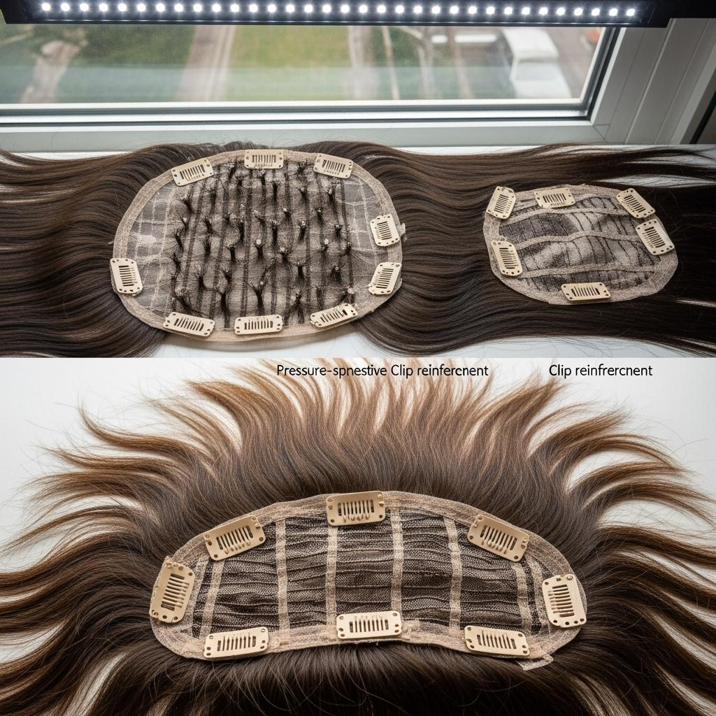 For fit and wear, use silicone‑backed, pressure‑sensitive clips placed along a PU edge to minimize traction on fragile zones. Allow clip re‑positioning on request and consider an optional elastic comfort band for clients with sensitive scalps. Packaging should be a rigid tray and breathable net so the base contour and straight hair lay stay pristine on arrival.