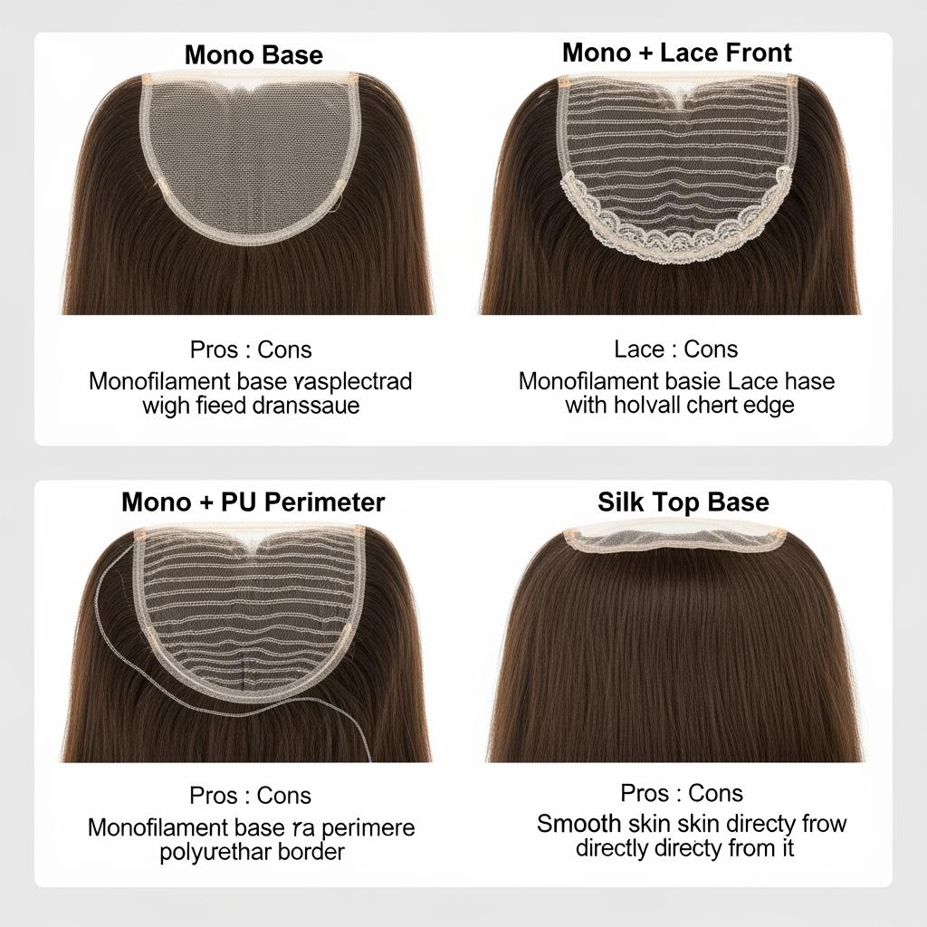 - Compared mono, lace-front hybrid, PU perimeter, and silk-top variants