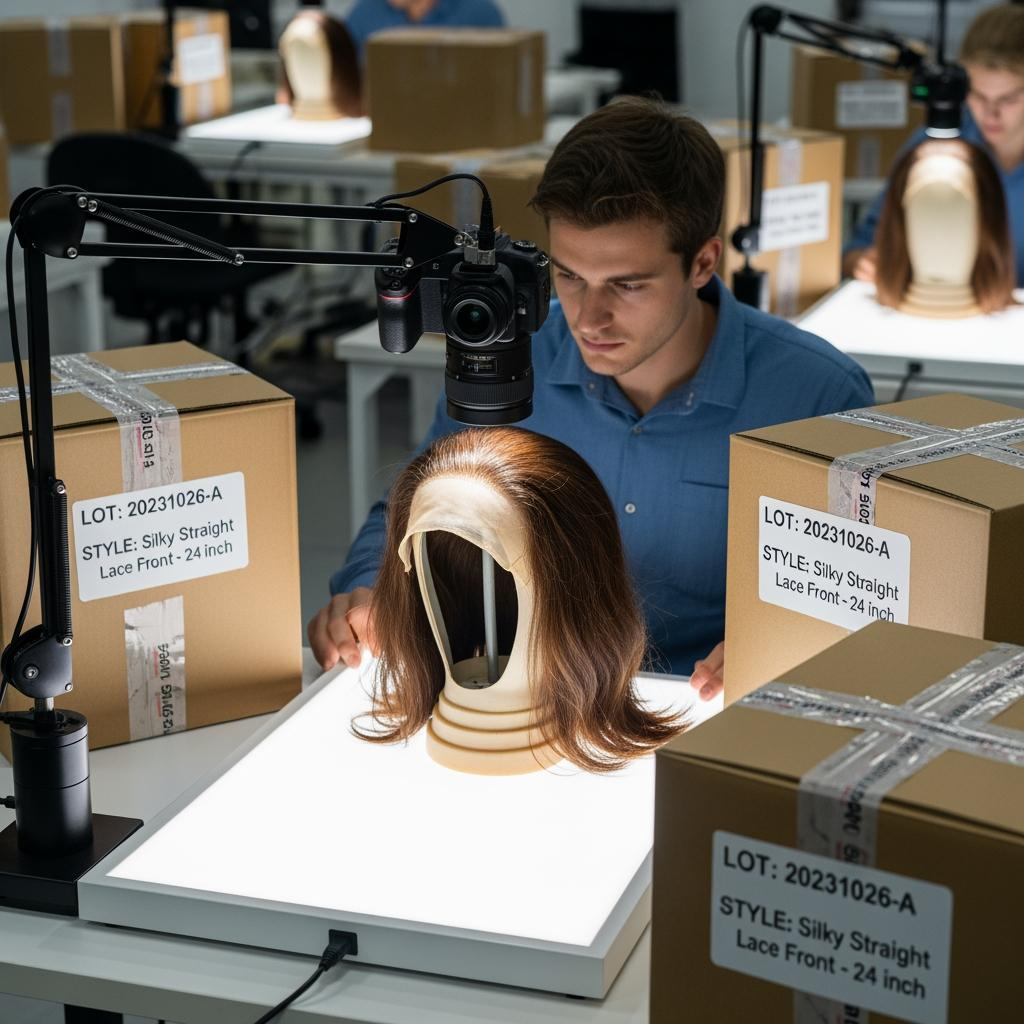 Daylight and LED checks of lace realism, knot bleach tests, cap symmetry, density mapping by zone, and lot-coded pre-shipment photos tied to your PO.