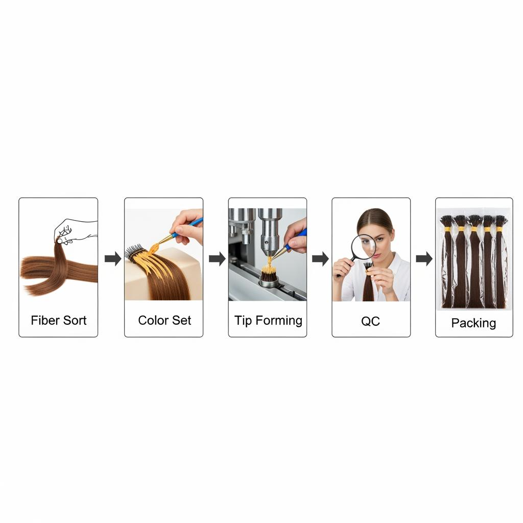 The Manufacturing Process of Brown Straight I Tip Hair Extensions Explained
