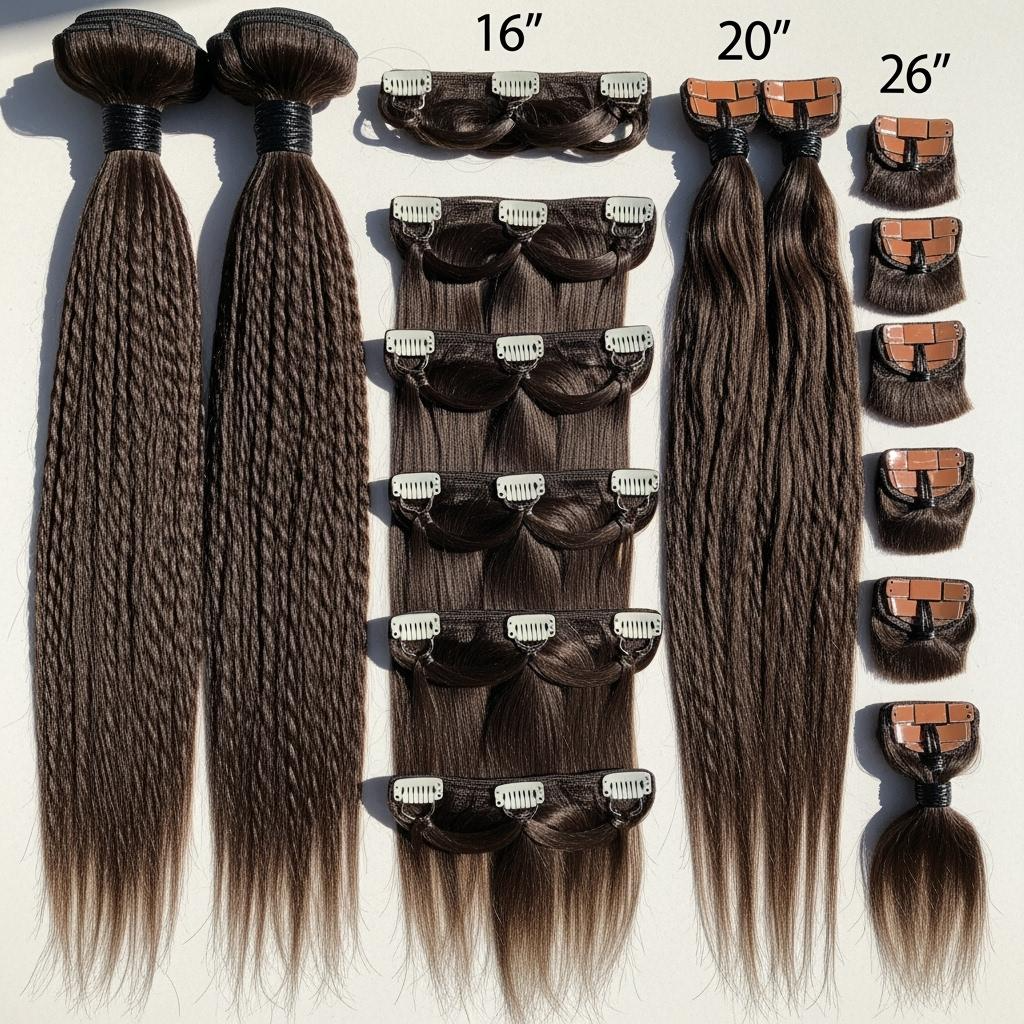 Bundles anchor professional installs; clip-ins drive quick retail transformations; tape-ins serve semi-permanent wearers. Carry two hero lengths per format with a consistent grams-by-length standard.