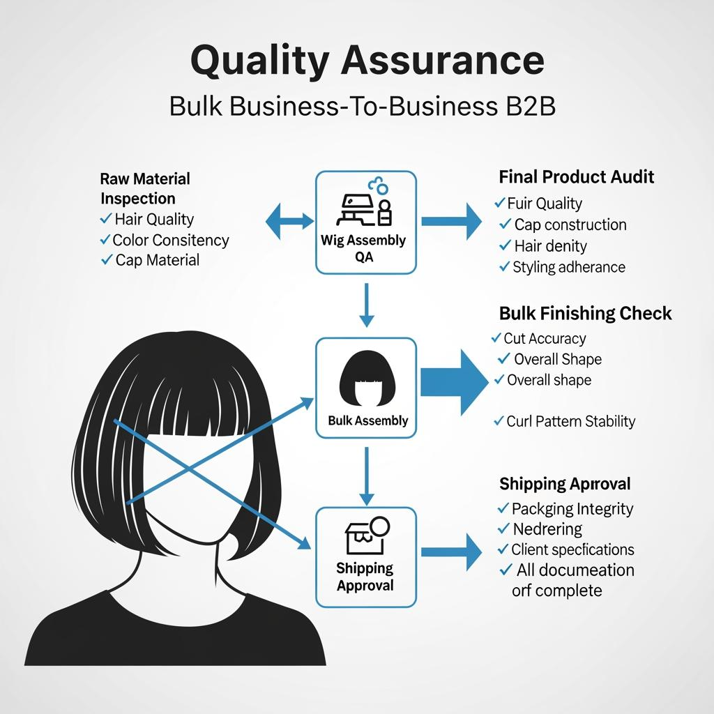 Quality assurance for bobs is about preventing “almost the same” units. The factory should be able to prove they check shape, symmetry, and finish—not only hair shedding and cap stitching.
