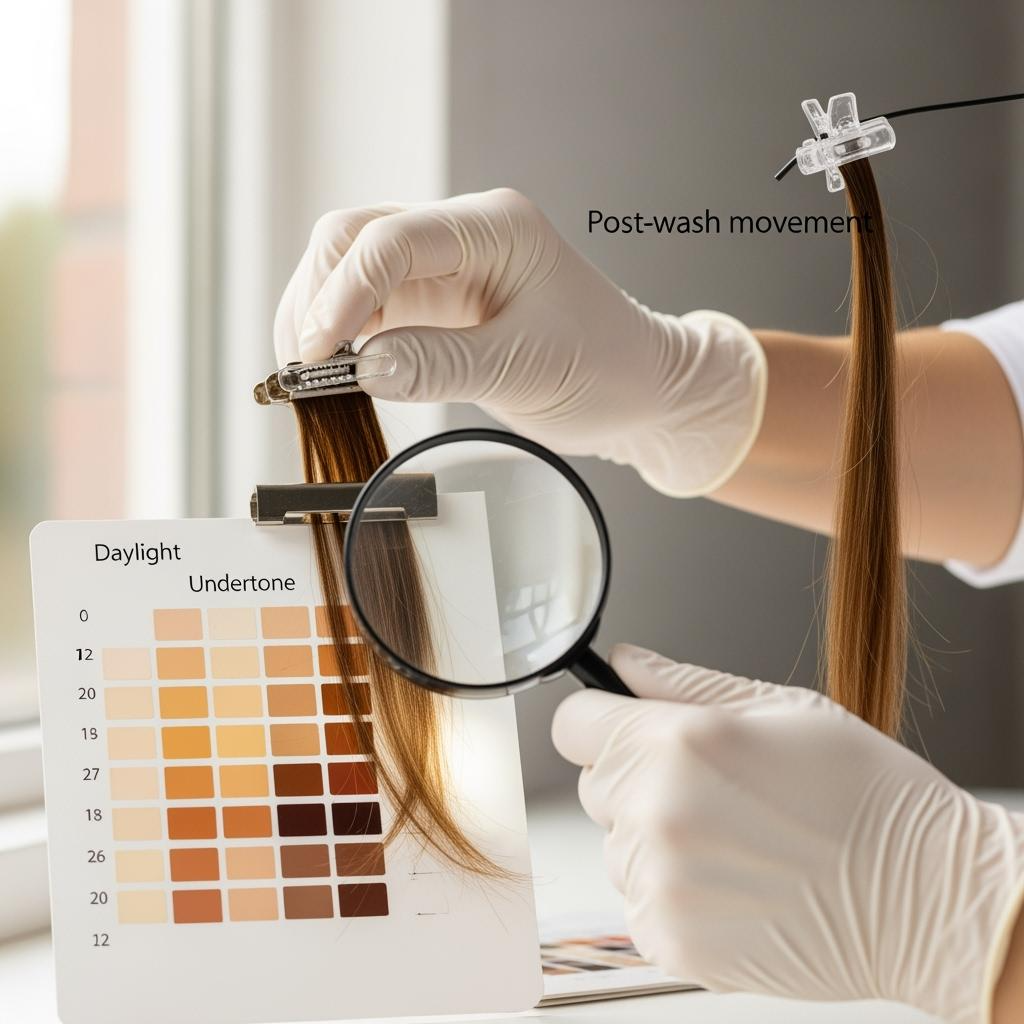 Custom color should read honest in window light and under LEDs, not just studio rigs. Build your ladder around a neutral 1B anchor, then add rooted blends for easier parting, balanced highlights for multi-tonal clients, and carefully toned blondes (60/60A/613) with matte-to-satin finish. For lengths, align grams-per-set to tail fullness at 20–24 inches; most US stylists find 160–200g sets create camera‑honest ends without overloading clips. Always approve after-wash reality, because heavy glosses or showroom ironing can mask thin tails and undertone drift.