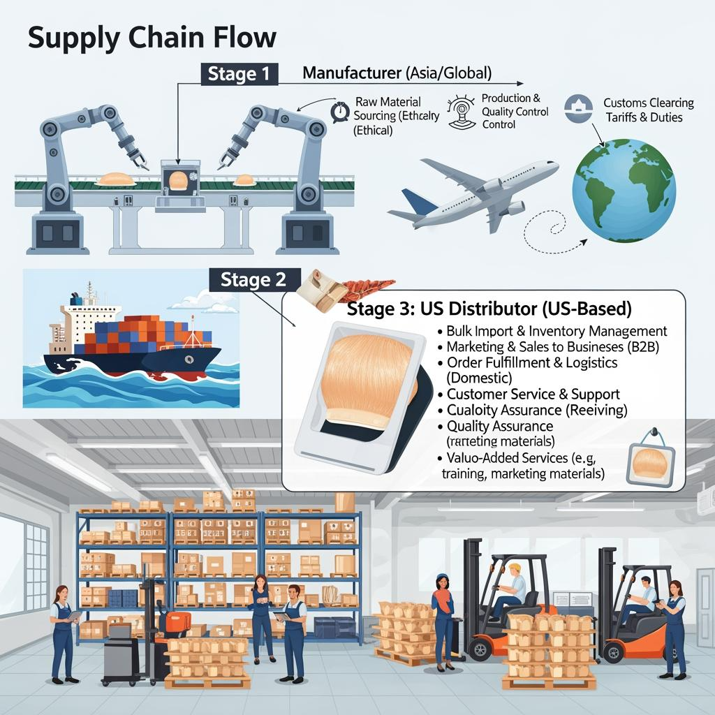 Distributors are the bridge between manufacturing variability and market expectations. In the US hair industry, the distributor often absorbs complexity: they curate SKUs, hold inventory, standardize shade names, and provide faster delivery than many direct-from-factory routes.