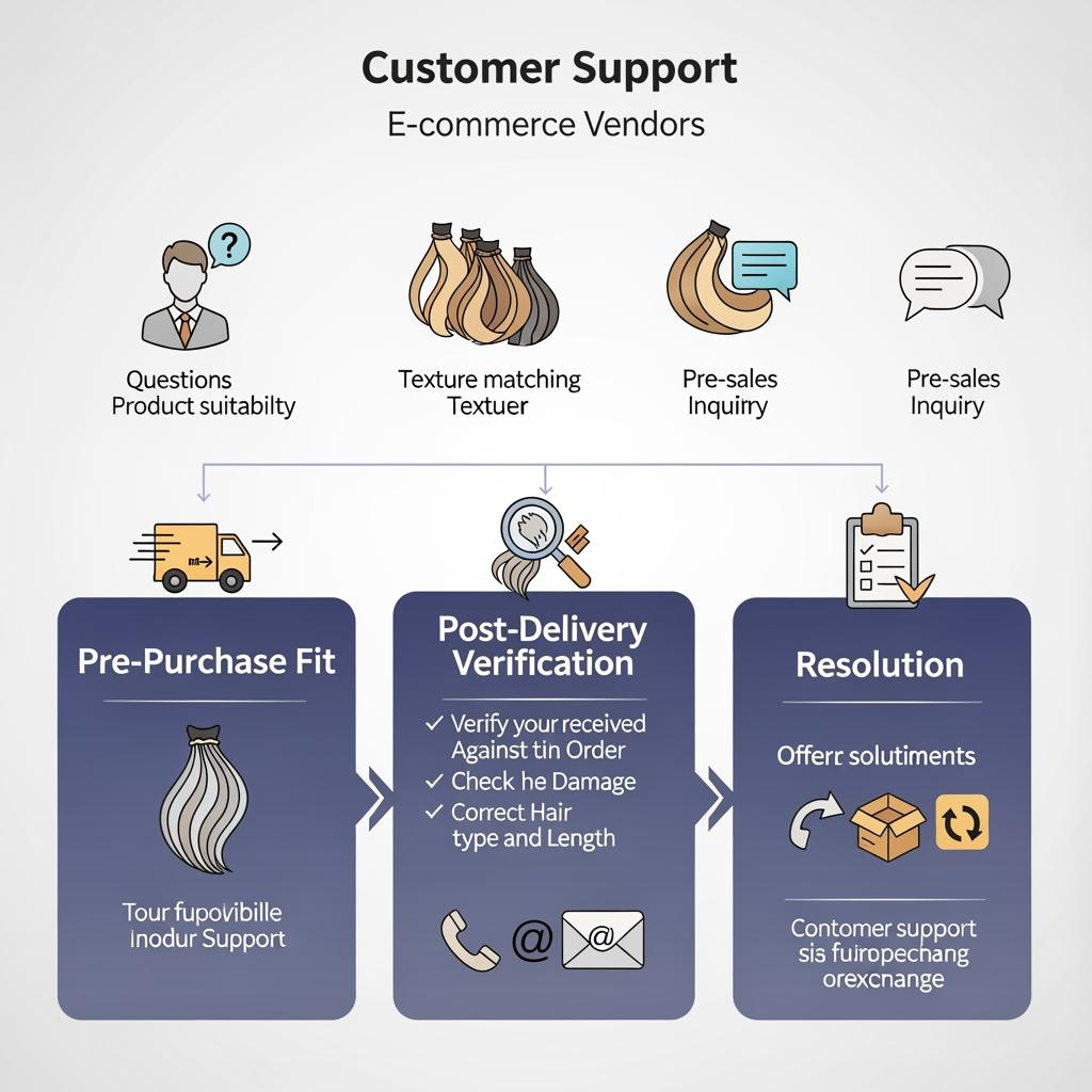 Create a pre-purchase decision path: customer shares desired look → you recommend lengths/bundle count → confirm texture and care expectations → confirm shipping timeline. Post-purchase, reduce disputes by making the unboxing verification step clear: check label, check texture, confirm length, keep original packaging until satisfied.