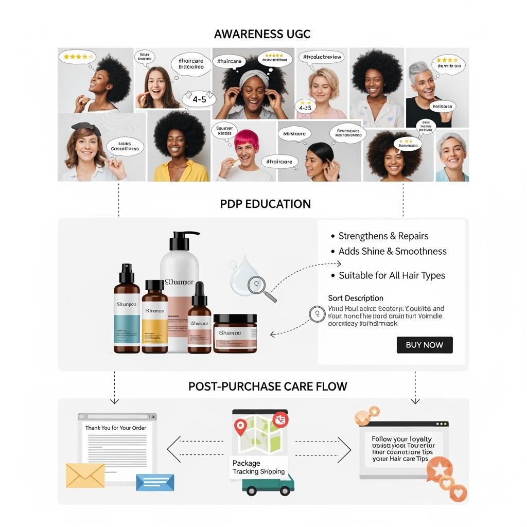 Your PDP must answer three questions quickly: Will it work for me? How do I use it? What happens if I don’t like it? Use model diversity, shade/texture selectors, short how-to videos, and clear fit notes. Bundle for outcomes (e.g., “install-ready tape-in kit”) and stage replenishment with subscriptions on consumables. On paid media, lead with 6-second problem/solution hooks, redirect to PDPs with social proof above the fold, and retarget on the care/maintenance angle to increase LTV.