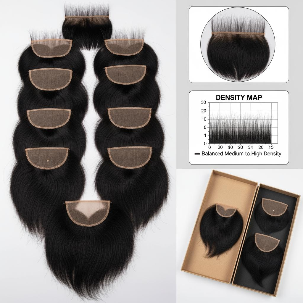 | 1. Spec brief | Base layers, silk color, hair grade, jet-black target, density map, attachment style, packaging | Verify base softness, silk opacity, hair sheen, and true 8×13 sizing | Flag the project as Human Hair 8×13 Silk Top Closures in Jet Black for B2B Buyers for internal tracking |