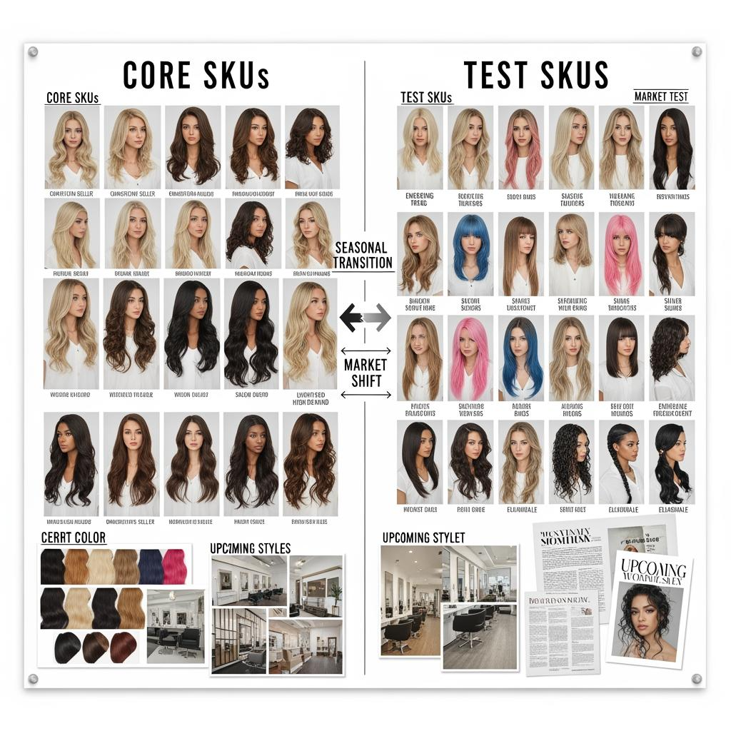 Inventory management for wigs is about availability without overbuying. Start with a “core” range sized to your actual client flow: a few best-selling lengths, the most requested colours, and the cap types you can confidently fit. Then create a “test” budget for new styles, but keep it separate so trends don’t eat your cash.