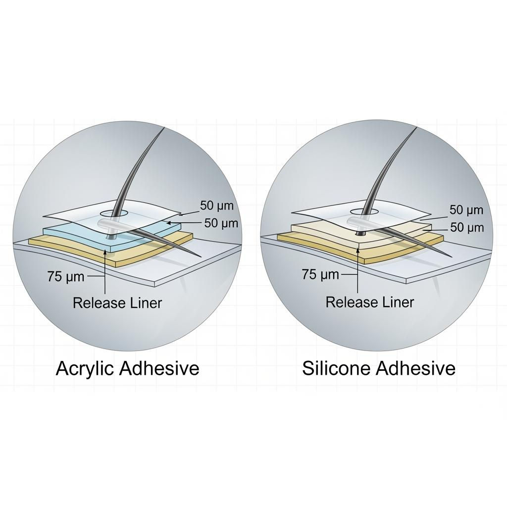 Invisible tape performance is adhesive performance. Medical‑grade acrylic tapes are popular for strong, stable holds with good humidity resistance; silicone‑based systems can trade raw hold for easier removal and improved skin friendliness. You’re aiming for a multi‑week bond that endures daily wear, light workouts, and routine shampoo cycles without lifting or edge curl, yet releases cleanly when it’s time to re‑tape.