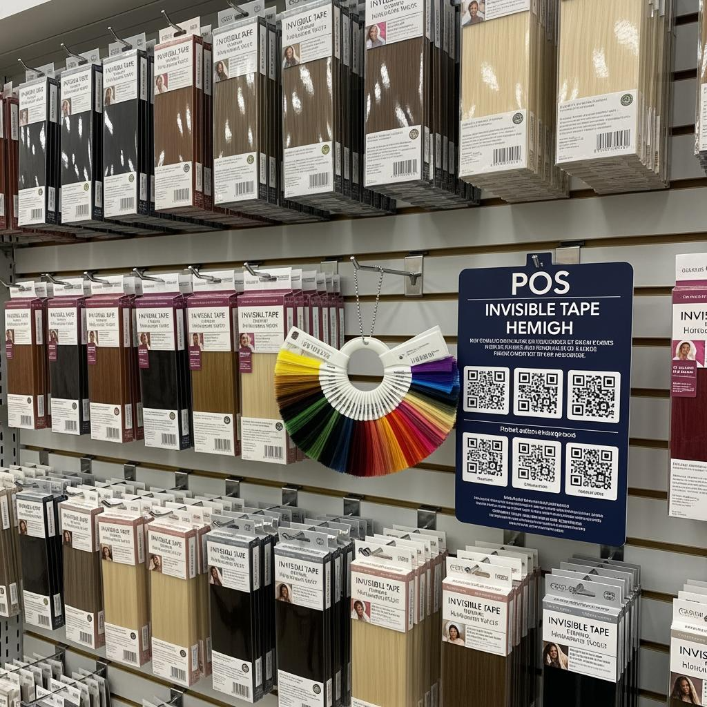 Merchandising bridges QA and sales. Swatch rings must match the production swatch you use in inspections, or color conversations drift. Shelf‑ready packaging should protect hair direction and present shade and length on both face and spine for fast picking; include GS1 UPCs for retail or FNSKU placement for marketplaces. POS displays that let clients feel end fullness (without exposing adhesive) boost confidence and speed consultations. Add QR codes to care videos and install guides to reduce returns and service calls.