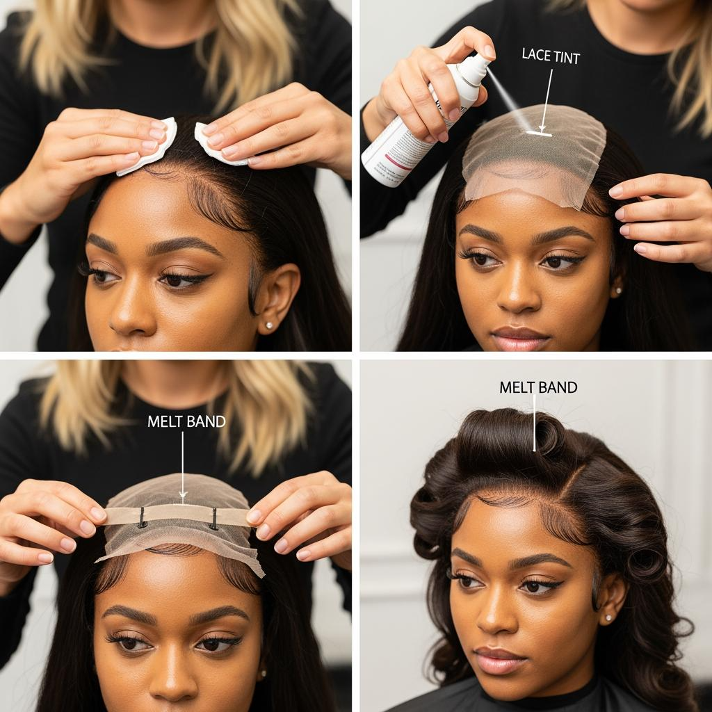 - Use a “test and set” approach: dry-fit → tint lace only as needed → apply adhesive thinly in layers → press with band and cool air to lock the melt.
