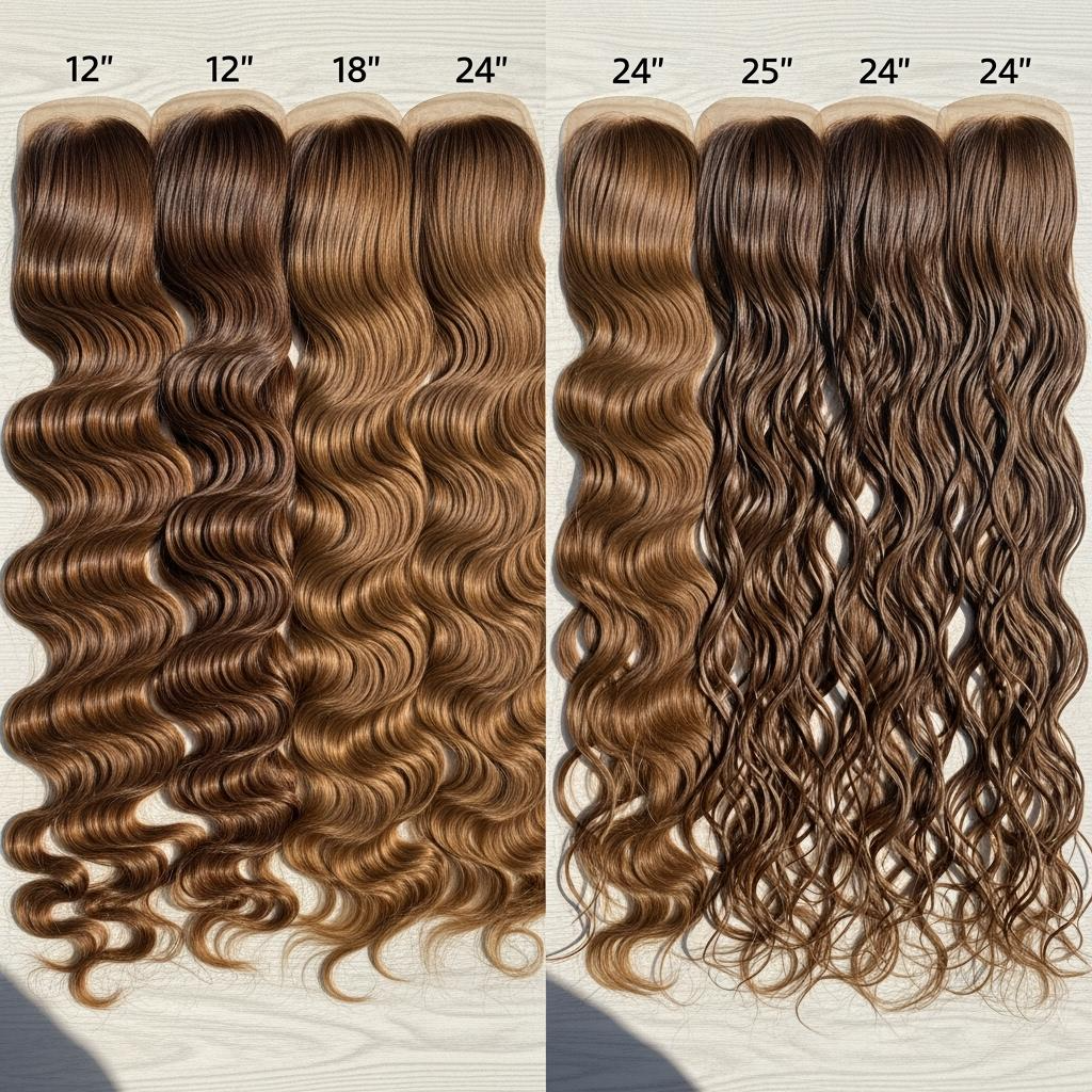 Color honesty starts with undertones. In a light brown, a neutral-to-slightly-cool base prevents orange shift under LEDs. On 13×4 closures, request micro-knots along the first 0.5–0.8 inches and gentle pre-pluck to avoid a hard line—especially important when the wave pattern frames the face and catches light. Always approve after a wash/air-dry plus a light scrunch to confirm the wave rebounds without frizz or limp ends.
