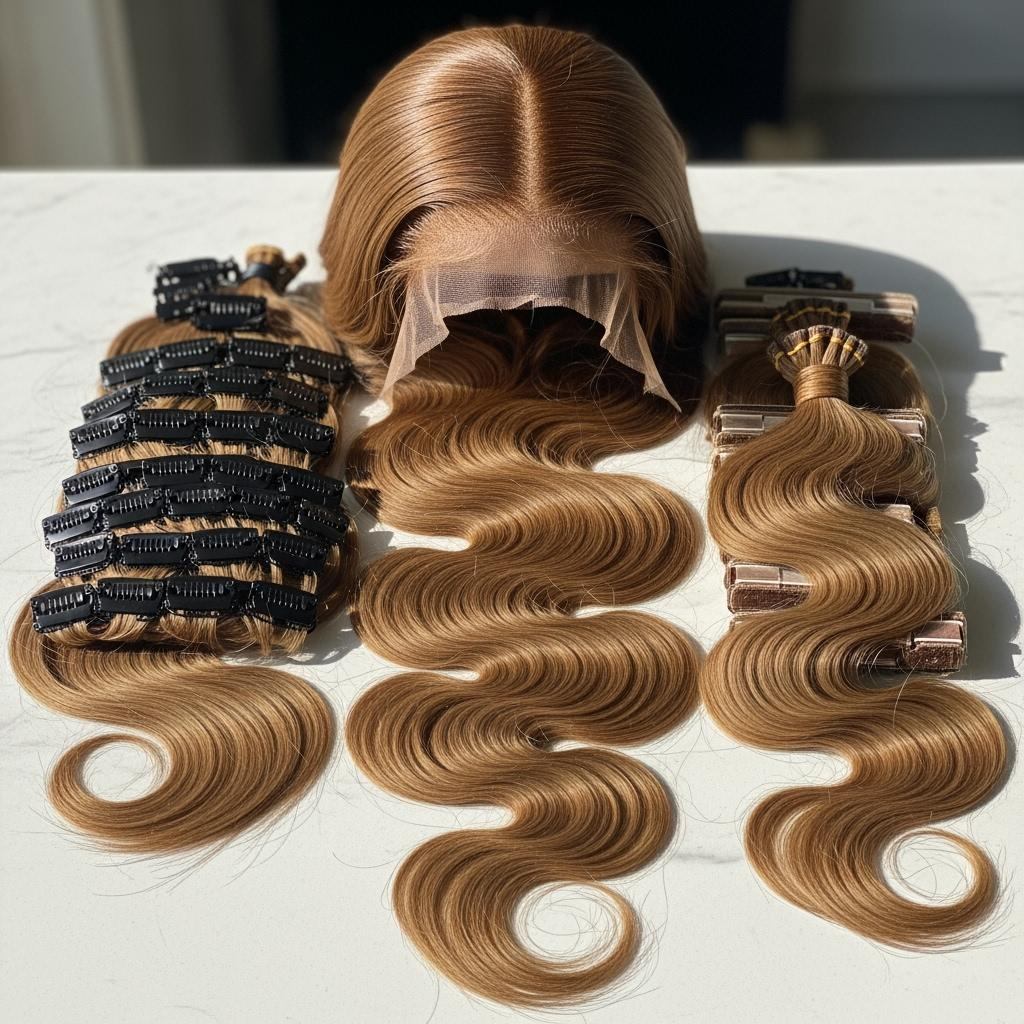 Even if wigs are your anchor, clip-ins and tape-ins can lift AOV and help clients build mixed-format wardrobes that still color-match your light brown. Clip-in blowout or body wave sets are perfect “weekend volume” add-ons for customers who wear 13×4 closures during the week; match undertone and luster so clients can layer pieces without a visible shift. Study clip-in seam engineering—thin, color-matched seams and strong springs—to inspire discreet weft placement inside high-density wigs, preventing bulk at the temples.