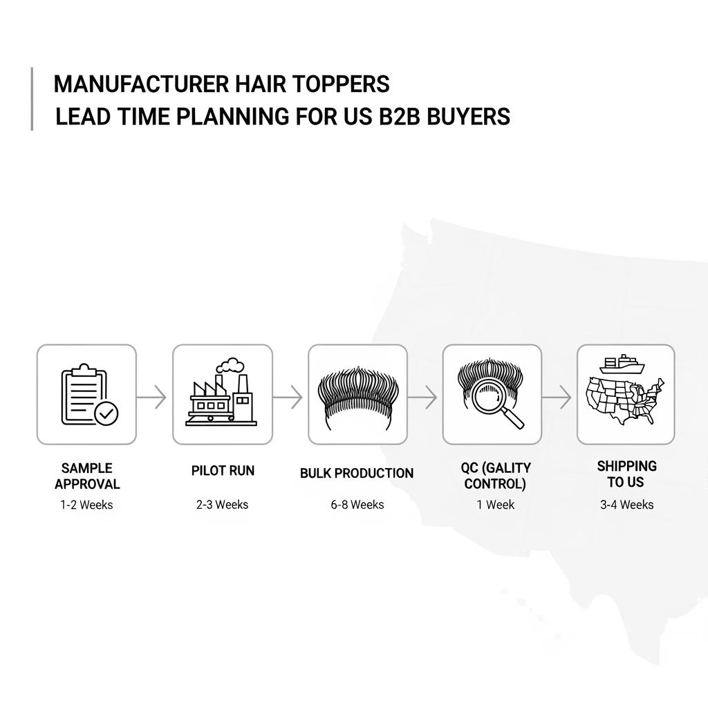 Break lead time into phases rather than accepting a single date: sampling/revisions, material preparation, base construction, ventilation/processing, finishing (wash/style), final QC, packing, and shipping. For toppers, ventilation and base work are commonly the pacing steps, especially for larger bases or silk top designs.