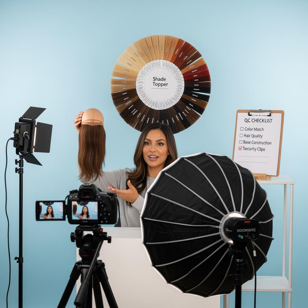 Quality determines both conversion and return rates. For silk tops, inspect knot concealment and silk thickness; too thick looks waxy on camera, too thin exposes grids. For mono bases, check breathability and edge finishing so clips don’t irritate. Clips should be coated and stitched cleanly; a light tug test should not shift the topper. Luster must read as soft under direct light—film a flash test before listing. Run a wear simulation: 30 minutes of collar friction followed by a brush-through to spot end frizz. Package protection matters, too: rigid forms and lace guards prevent creases that show up during unboxing lives.