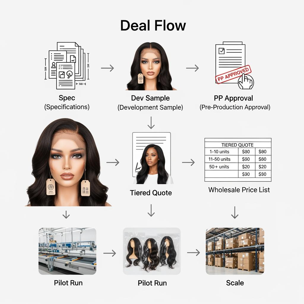 Negotiations stall when specs are fuzzy. Lock your materials (lace type/shade, knot size and bleach zone, density-by-grams, cap pattern, hair grade), then approve a dated PP sample. When everyone prices the same “recipe,” quotes become comparable and you avoid post-negotiation drift.