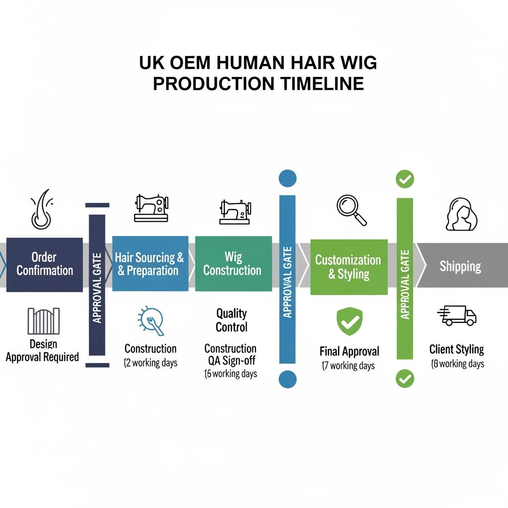 Lead time is not one number—it’s a chain: development time (sampling), production time (bulk), and delivery time (logistics). UK buyers often underestimate how much time is consumed by approvals, especially when a brand is new and still finalising details like knots, hairline contour, or exact density.