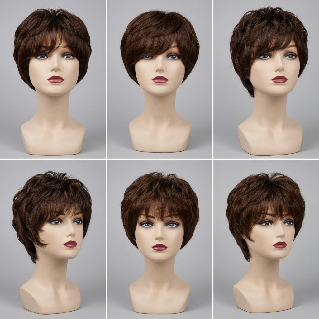 Then compare hair material and finish. Human hair, heat-friendly synthetic, and standard synthetic each sell differently and behave differently under customer styling. For pixie cuts, fiber memory (how well it bounces back after combing) and frizz resistance at the nape are frequent pain points—so ask what the supplier does to control those.