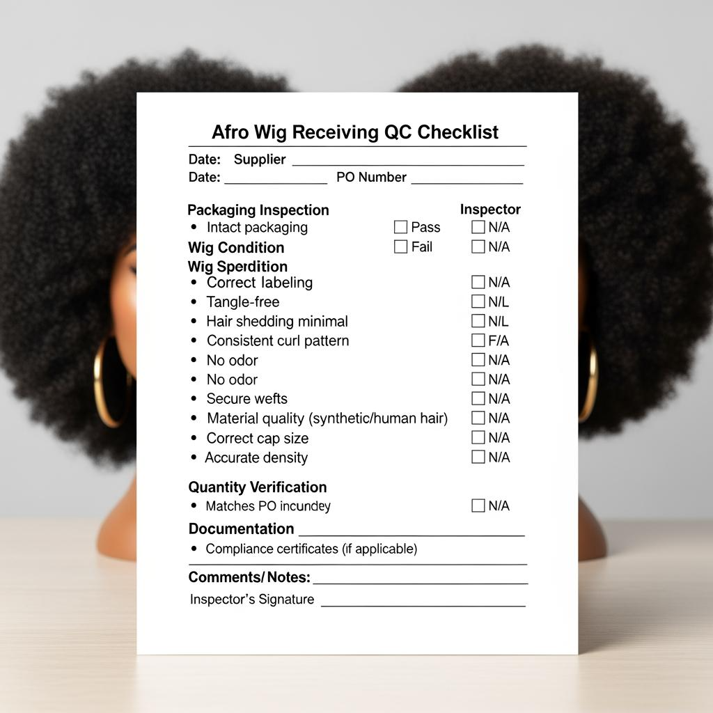For wholesale, define quality in checks your team can repeat at receiving. Confirm cap construction consistency, elasticity recovery, parting space (if applicable), and shedding/tangling behavior after a basic comb-through test that matches how customers will handle it. Also verify density and “volume feel”—afro styles can look dramatically different with small changes in density and layering.