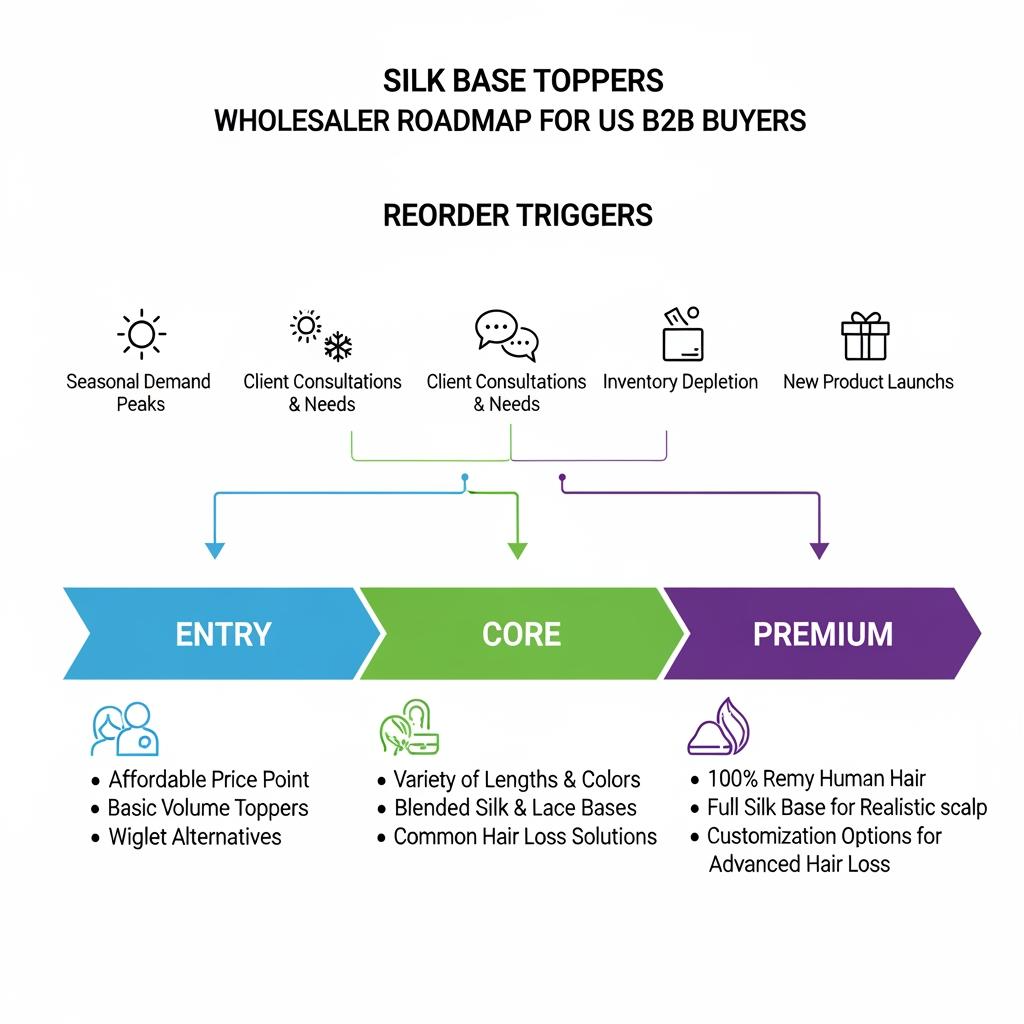 Silk base topper pricing usually reflects: base size, base complexity (silk layers, any lace front), hair type/quality, density, length, and finishing (cut/shape, curl pattern, color work). The key is to separate the “must-have realism features” from optional upgrades so you’re not paying premium pricing for features your channel doesn’t value.