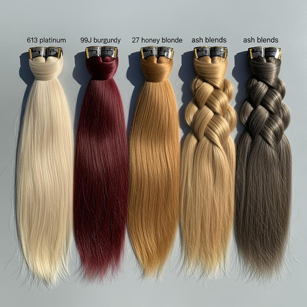 The B2B winners pair camera-honest undertones with finishes that stay silky after a gentle cleanse. Level-10 blondes (613) expose porosity and gloss issues immediately; burgundies (99J) punish uneven dye take; warm blondes (27) can drift brassy in window light. For trend breadth without fragmenting inventory, anchor in 613, 99J, and 27, then add 1–2 ash or copper accents plus a controlled ombré/balayage family that recycles your base shades.