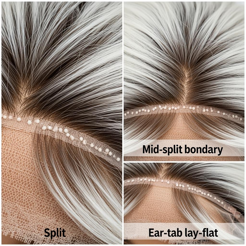 Split drift is the most common complaint: the midline creeps or feathers into the white panel, especially on smaller caps. Solve this by requiring pattern jigs and overhead QC photos with rulers during PPS and first production. Yellowing of the white panel can occur from heat, UV, or pigment migration; counter with pigment-stable fibers/dyes, lightfastness checks, and UV-mitigating storage. Straight hair kinks in transit if packed loosely; mandate rigid trays or molded forms that support the part line and ear tabs. Lace-tone mismatch is a subtle but visible issue in close-ups; ask for hairline macros across skin tones and stock two lace tones plus a neutral. Finally, knot bleaching near the split can halo onto the white side; specify controlled bleaching zones and review macros before scale-up.