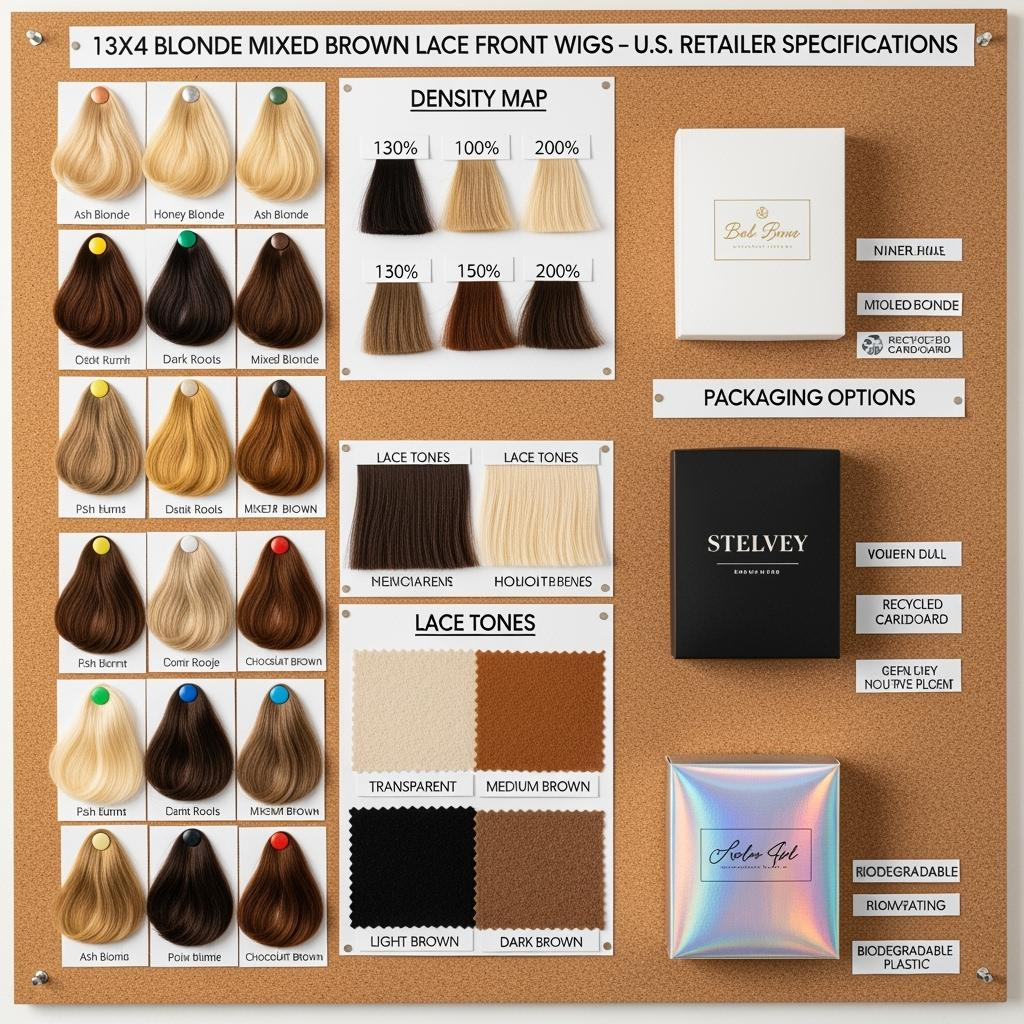 If you sell in the U.S., the best 13×4 Blonde Mixed Brown Lace Front Wigs share three traits: a natural blonde–brown blend that looks true under daylight and 5000K LED, a meltable 13×4 lace that flatters multiple skin tones, and construction that holds up to co-wash and repeated styling. Start by defining your shade map (root depth, highlight width, and placement), density range, cap features, and packaging that preserves the style in transit. Share your spec and forecast to get quotes, serialized PPS samples, and a roll‑out plan aligned with your selling calendar.