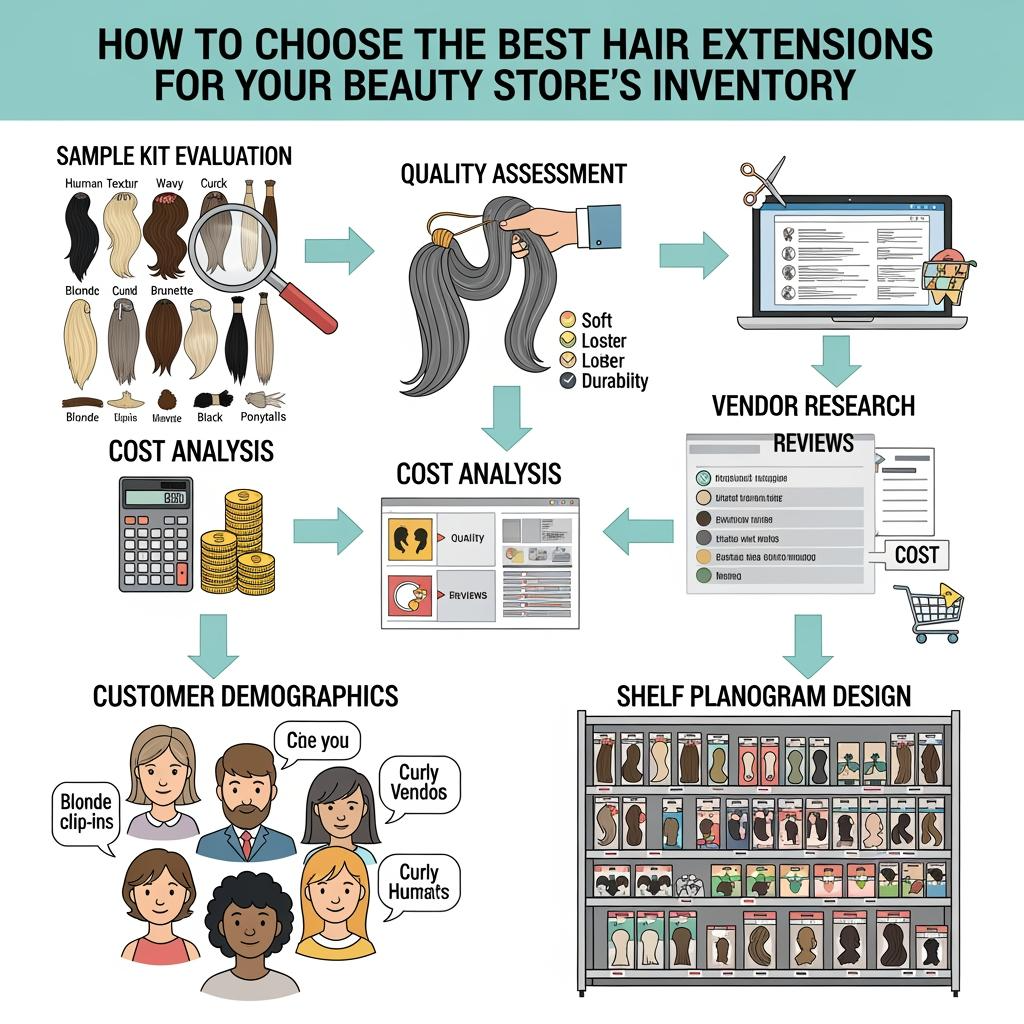 If you want to improve sell-through and reduce returns, focus your buying process on repeatable quality, clear customer segments, and margin math you can trust. This guide shows you How to Choose the Best Hair Extensions for Your Beauty Store‘s Inventory by pairing a practical sampling method with a clean assortment strategy, so your staff can recommend confidently and your shelves move. Share your target customer profiles, budget bands, and top styles, and I’ll map a first-order assortment, a sampling/QC plan, and a pricing ladder tailored to your store.