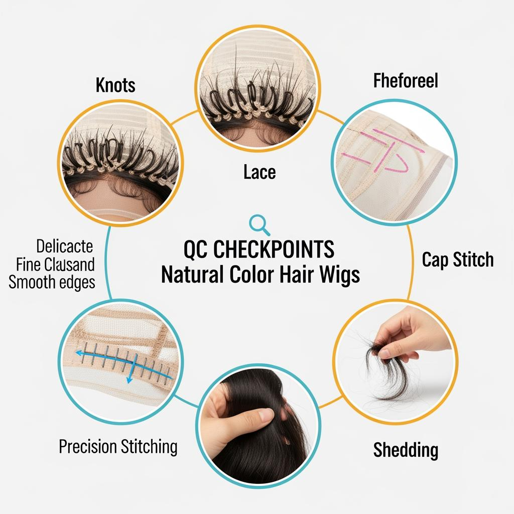 QA is what prevents “looks fine in the box” from becoming “returns after two wears.” For natural colors, quality assurance should cover both appearance and durability: shade consistency, fiber/hair integrity, knot security, lace quality, cap stitching, and shedding behavior.