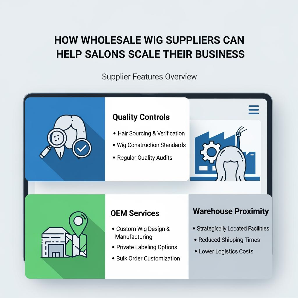 | Consistency | Same lace grid, density by grams, repeatable hairline | Fewer re-installs/returns | Core to How Wholesale Wig Suppliers Can Help Salons Scale Their Business |