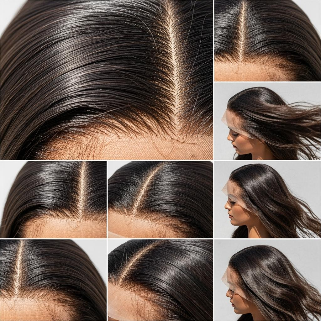 Hairline/part detail | Tapered edge; fine knots or clean silk top | Blunt front; bulky knots | Readable as “wig” at 2 ft |