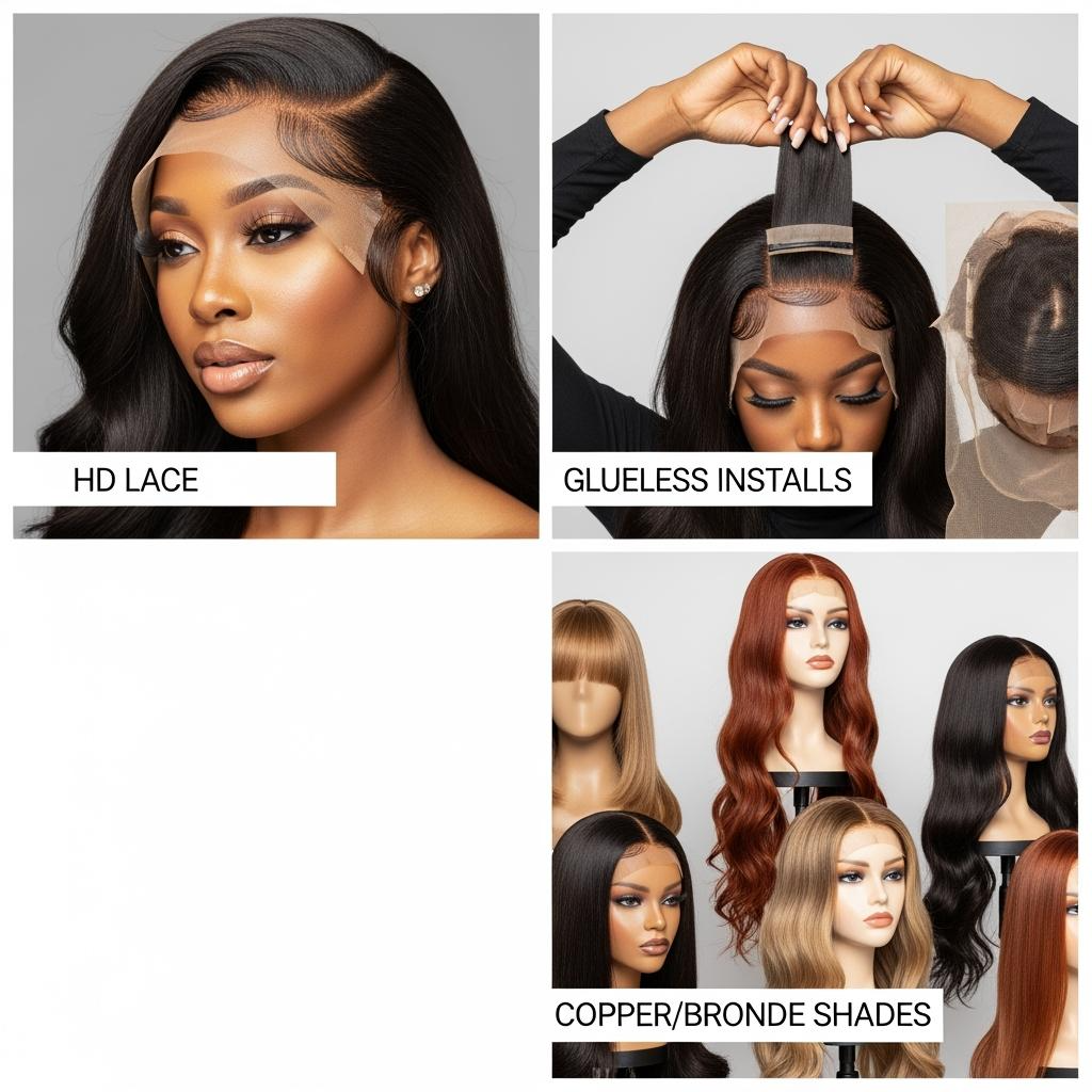 In 2025, “wear-and-go” realism defines the winners. Pre-everything SKUs—pre-plucked hairlines, pre-cut HD/soft lace, pre-bleached knot looks, and pre-curled sets—move fastest because they reduce at-home friction. Glueless installs with silicone-lined bands and contoured ear tabs dominate day-to-day wear. For textures, natural-first remains strong: soft yaki straights, body/loose waves, and believable kinky-curly coils with tapered hairlines and de-bulked crowns. On lengths, balanced lobs (12–16″) anchor daily baskets while 18–24″ retains a premium lane; densities lean “natural full” with lighter crowns to avoid helmet silhouettes on camera. Color trends cluster around believable dimension—subtle caramels, brondes, chestnut brunettes—with occasional copper capsules and rooted fashion shades for moments. The opportunity for dropshippers is to pair these realism-first builds with retail-ready packaging that preserves part corridors and lace edges so unbox reality matches PDPs.